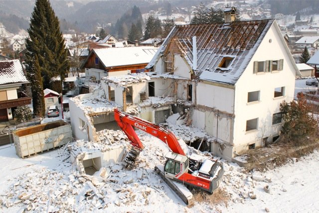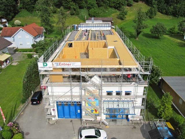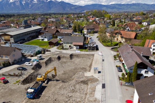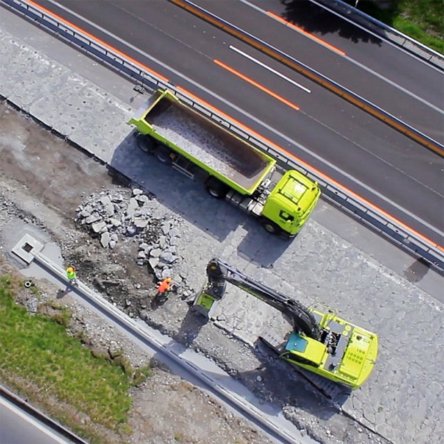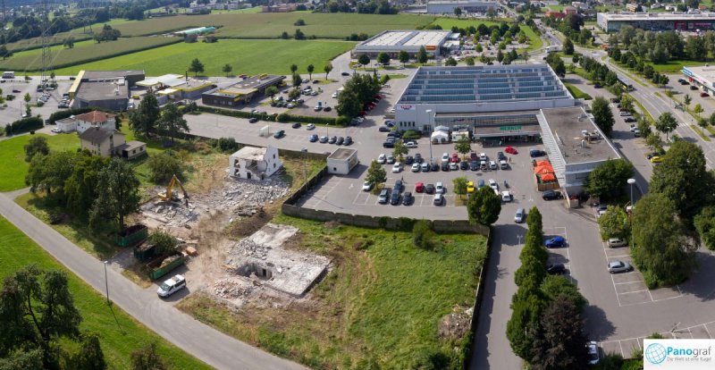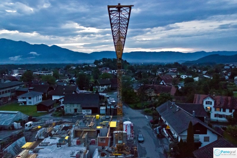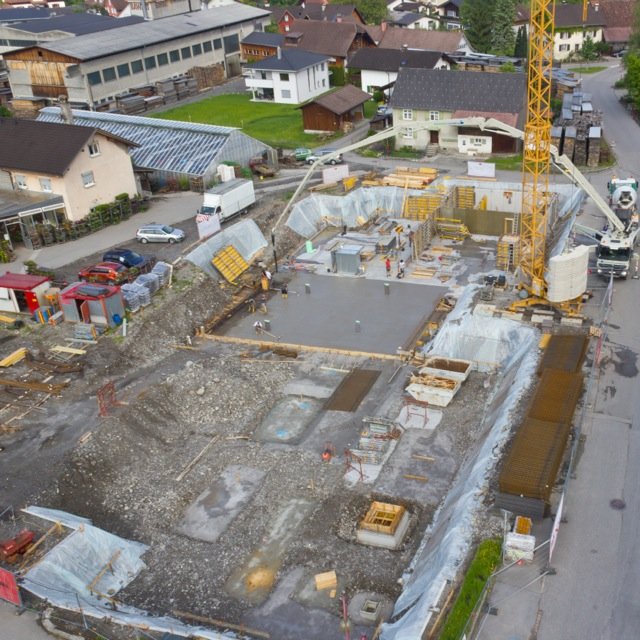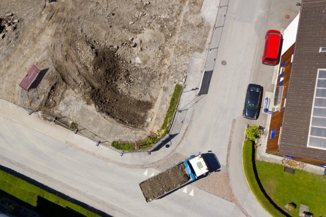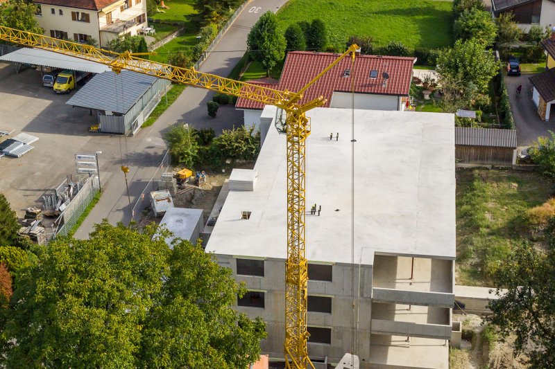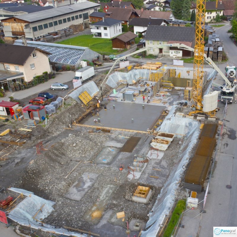 Durch die ferngesteuerte Flug-Drohne ist es möglich, Baustellen aus einer Höhe von bis zu 150m zu Dokumentations- oder PR-Zwecken zu fotografieren.